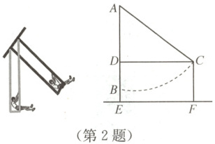 如图,秋千静止时,踏板离地的垂直高度$BE = 1$m,将它往前推6 m至$C$处时(即水平距离$CD = 6$m),踏板离地的垂直高度$CF = 4$m,它的绳索始终拉直,则绳索$AC$的长是(