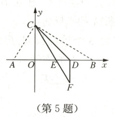 5. 如图,在平面直角坐标系中,$\angle ACB = 90^{\circ}$,$AC = 6$,$BC = 8$,将边$AC$沿$OC$翻折交$x$轴于点$E$,$D$是$BE$上的一点,再将边$BC$沿着$CD$翻折,点$B$恰好落在$CE$延长线上的点$F$处.