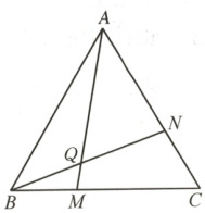 11. 如图,$\triangle ABC$ 为等边三角形,点 $M$ 是线段 $BC$ 上任意一点,点 $N$ 是线段 $CA$ 上任意一点,且 $BM = CN$,$BN$ 与 $AM$ 相交于点 $Q$.