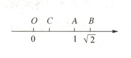 15. 如图,数轴的正半轴上有$A$,$B$,$C$三点,点$A$,$B$表示数$1$和$\sqrt { 2 }$.点$B$到点$A$的距离与点$C$到点$O$的距离相等,设点$C$所表示的数为$x$.