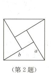 2. 我国古代数学家赵爽的“勾股圆方图”是由四个全等的直角三角形与中间的一个小正方形拼成的一个大正方形(如图所示).如果大正方形的面积是13,小正方形的面积是1,直角三角形的两直角边长分别为$a,b$,那么$(a - b)^2$的值是 (