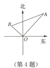4. 一艘轮船以16海里/时的速度离开港口$O$(如图),向北偏东$40^{\circ}$方向航行,另一艘轮船同时以12海里/时的速度向北偏西某一角度的航向行驶,已知它们离港口一个半小时后相距30海里(即$BA = 30$海里),则另一艘轮船航行的方向是北偏西