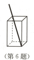 6. 如图,一个长方体形的饮料盒的底面长为$4 cm$,宽为$3 cm$,高为$12 cm$,在它一角处开一个插吸管的小孔,将一吸管最大限度插入盒中,外露的长度为$3 cm$,则此吸管总长度为