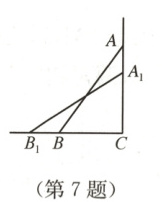 7. 如图,一架$2.5 m$长的梯子斜靠在一面竖直的墙上,这时,梯子底端距墙底端距离$BC = 0.7 m$,如果梯子的顶端沿墙下滑$0.4 m$,则梯子底端$B$将向外移