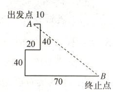 向东走$10$米,又向南走$40$米,再向西走$20$米,再向南走$40$米,再向东走$70$米到达终止点$B$。
