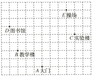 教学楼 B:;实验楼 C:;图书馆 D:;操场 E:;