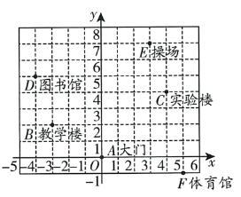 (3) 若体育馆 F 的位置坐标为(5,-1),在图中标出它的位置.