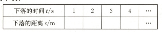 |下落的时间$ t/ s $|1|2|3|4|…|