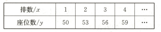 ;(2)写出座位数$ y $与排数$ x $之间的关系式: