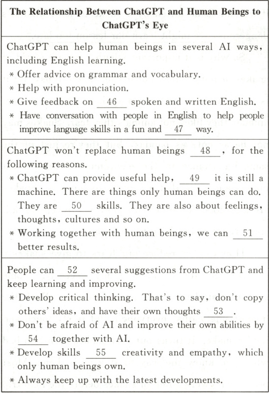 四、46. both 47. natural 48. completely 49. but 50. beyond 51. achieve 52. get 53. instead 54. working 55. like