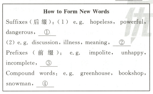 8. D 考查构词法。campfire 是由 camp 和 fire 合成的名词,表格里 Compound words 部分中 greenhouse 是由 green 和 house 构成的合成词,与 campfire 构词法一致。