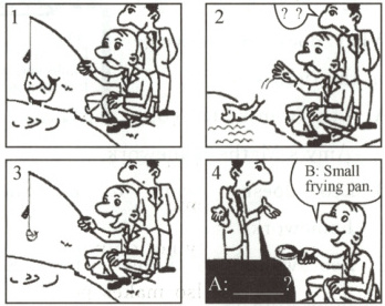 5. C 考查看图理解。根据漫画可知,钓鱼人一开始钓了条大鱼,他却把这条大鱼扔了,又钓了条小鱼。另一名男子看到后问了一句话,钓鱼人回答“煎锅小”。这里男子对钓鱼人舍弃大鱼留下小鱼的这一情况表示疑惑,应该是询问原因。