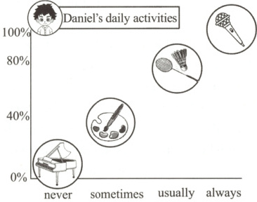 10. C 考查看图理解。根据图片可知,Daniel 打羽毛球的频率是80%,也就是usually。