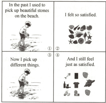 14. D 考查看图理解。根据图片和文字“①在过去,我常常在沙滩捡漂亮的石头;②我感到很满足;③现在我捡不同的东西;④并且,我仍然同样满足。”可知,现在捡可回收的物品和其他垃圾使他感到满足。这是有关环保的漫画,D 项“我们可以在保护大自然的过程中获得快乐”符合漫画要表达的含义。