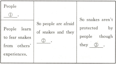 Scientists also found people learned to fear snakes faster. Why did they fear snakes? Most of them said that in their experiences, they were influenced by the scared voice and faces of those who met snakes, but weren't bitten by snakes. After all, if we had to be bitten by a snake to learn that it's dangerous, we might learn our lesson too late.