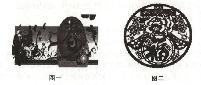 (2)示例一(图一):画面主体为艺术化“春”字,左侧有花草、蝴蝶,右侧有飞鸟,背景饰以圆形纹样,整体展现春日生机。