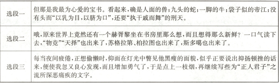 (1)鲁迅先生非常喜欢选段一、二中提及的两部书,请写出两部书的名称。