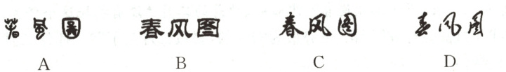 我选B,它属于楷书,理由:楷书字形方正,笔画平直,稳重严谨,与春风图中规整、柔和且端庄的氛围相契合,能很好地搭配展现春风的温润之感。