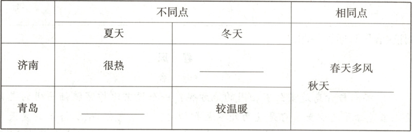 | 青岛 | 避暑胜地(较凉爽) | 较温暖 | 秋天长而晴美 |