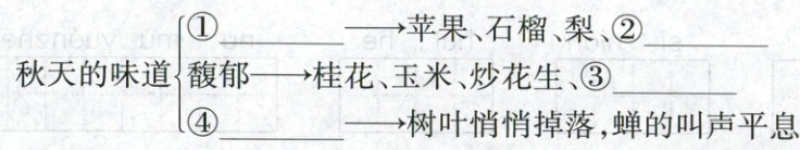 2. [语文要素]文章描写了秋天的哪些味道?举了哪些例子?完成下面的思维导图。(4分)