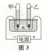 (3) 分解法:一种水的分解实验装置如图3所示,甲、乙两支试管中的气体分别是