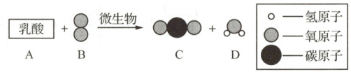 (4)反应前后物质的总质量不变,则参加反应的乳酸的质量=88g+36g-64g=60g。由图可知,B为O₂、C为CO₂、D为H₂O,88gCO₂中C元素的质量$=88g×(\frac{12}{12+16×2}×100\%)=24g,$36gH₂O中H元素质量$=36g×(\frac{1×2}{1×2+16}×100\%)=4g,$根据反应前后元素种类和质量不变,则乳酸中含有24gC元素和4gH元素,O元素的质量=60g-24g-4g=32g,则其中C、H、O元素的质量比=24g:4g:32g=6:1:8。