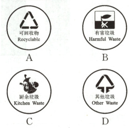 ④学校正推行垃圾分类。餐后的食物残渣应投入印有