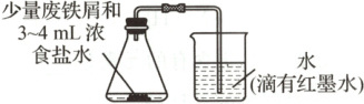 。④某学生做了铁的锈蚀实验,装置如图。一段时间后可观察到导管内的液面