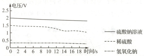 探究一:分别用100 mL等浓度的稀硫酸、氢氧化钠溶液、硫酸钠溶液作为电解液,探究电解液种类对输出电压的影响,实验结果如下: