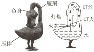 18 如图是我国西汉青铜雁鱼灯及其示意图。灯油燃烧时,烟气通过鱼身和雁颈导入雁体内水中,减少对室内空气的污染。下列说法错误的是 (