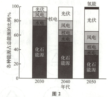(4)我国2030年至2050年各种能源使用预期情况如图2所示。