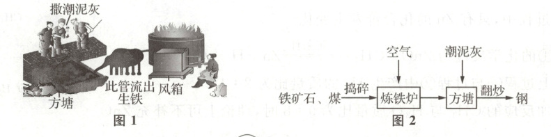 小组查阅资料发现我国有着悠久的钢铁冶炼史,《天工开物》中记载的“炒钢法”如图1,该方法的生产过程可用图2表示。