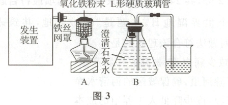 已知:草酸钠固体(化学式为$Na_2C_2O_4$)加热分解生成碳酸钠和一氧化碳,化学小组利用此反应制备一氧化碳,并用一氧化碳还原氧化铁。他们设计的实验装置如图3所示。