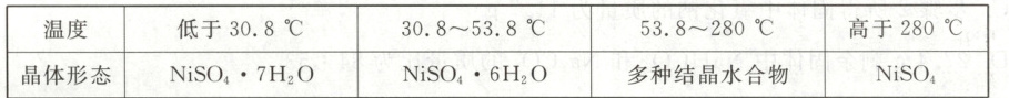 (用化学方程式表示)。(5)资料显示$NiSO_{4}$ 结晶水合物的形态与温度有如表关系。