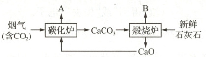 (2)①由于生成的CaO疏松多孔,故对CO₂具有良好的吸附性。②由图可知,碳化炉中CO₂与CaO反应生成CaCO₃,煅烧炉中CaCO₃分解生成CO₂与CaO,故物质B中CO₂含量较高。