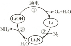 1. C 整个转化过程中,反应③添加的水中的氢元素一部分转化为LiOH中的氢元素,一部分转化为氨气中的氢元素,反应①为LiOH电解生成水,但生成的氨气不断消耗水中的氢元素,因此整个转化过程需要不断补充水。