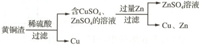 2. (2024连云港)一种以黄铜渣(含$Zn$、$Cu$、$ZnO$、$CuO$)为原料获取$Cu$和${ZnSO_{4}}$溶液的实验流程如图。下列说法正确的是(