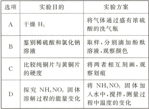 19 下列实验方案不能达到相应实验目的的是(