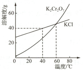 40℃时,将50gKCl加入100g水中,所得溶液质量取决于KCl是否全部溶解,应结合该温度下KCl的溶解度进行判断;除去$\mathrm{K_2Cr_2O_7}$中混有的少量KCl,最终要得到$\mathrm{K_2Cr_2O_7}$,要根据$\mathrm{K_2Cr_2O_7}$的溶解度随温度变化的情况进行分析。