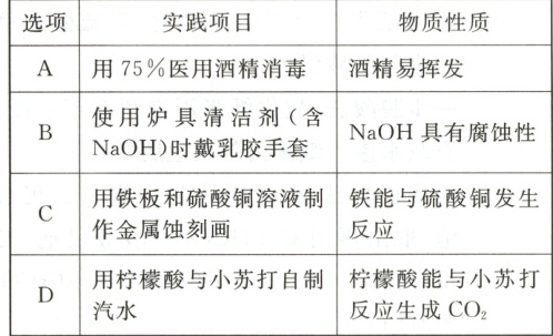 16 下列实践项目与相应物质性质没有直接关联的是(