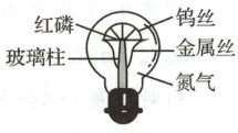 17.D 钨丝能在高温下发光而不熔化,说明钨丝的熔点高,A错误;金属具有导电性,B错误;灯泡内填充$\mathrm{N_2}$,是因为$\mathrm{N_2}$的化学性质稳定,可作保护气,防止钨丝被氧化,C错误;已知生产时灯泡内可能会混入少量$\mathrm{O_2}$,白炽灯工作时放热,能促使红磷与$\mathrm{O_2}$反应,消耗残留$\mathrm{O_2}$,保护钨丝,D正确。