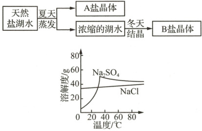 (3)山西某盐湖中含有较多的氯化钠和硫酸钠。古人常用“滩田法”制取芒硝,其制取流程如下,如图是两种盐的溶解度曲线。“滩田法”中芒硝是在