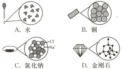 )A.${\rm NaCl}$由钠离子和氯离子构成