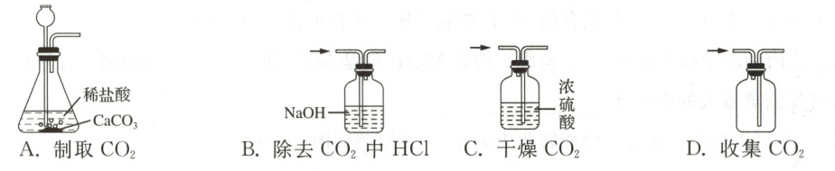3 实验室用$CaCO_{3}$、稀盐酸制取$CO_{2}$,涉及的装置和操作正确的是 (