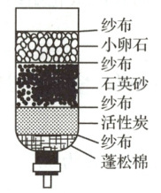 ;再用小卵石、石英砂、活性炭等材料自制净水器对湖水进行净化(如图)。其中小卵石、石英砂的作用是过滤