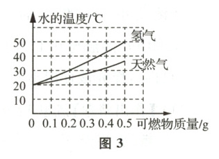(2) 在理想状态下,小组同学设计了图2的实验,将测得的实验数据绘制成图像(如图3),由图3可得,氢气作为燃料的优点是