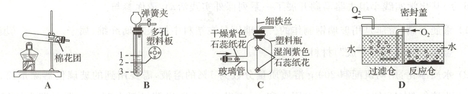 ②装置D是某家用供氧器的原理示意图,向反应仓中依次加入过碳酸钠和二氧化锰,迅速产生$O_2$并从过滤仓的水中逸出,可得出$O_2$的性质是