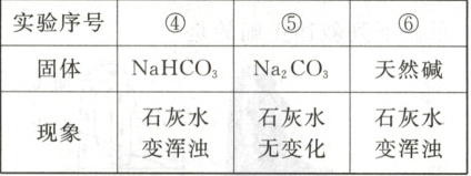 (3)实验①②③中,能确定该天然碱含有${NaHCO_{3}}$的是_______(填实验序号),理由是_______。