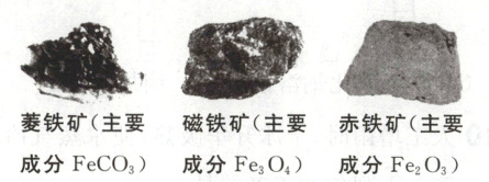 。(2)菱铁矿、磁铁矿和赤铁矿都可用于炼铁。写出高温条件下$CO$与磁铁矿炼铁反应的化学方程式: