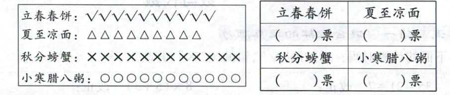 14. 三(2)班开展“我最喜爱的节气美食”投票,结果如下:(每人都投票且只能投一票)